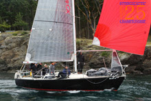 Fortunately for one of the J/24s that broached, Yearwood and company aboard DIE HARD ISLAND WATER WORLD, made it back ashore and the entire crew all went back sailing the next day, none the worse for wear & tear. “We were doing 13 knots of boat speed in over 25 kts of breeze, sailing by the lee towards the mark,” reported Yearwood about his J/24 experience. “There was another boat to leeward of us also sailing by the lee so we had to sail above the mark to avoid a collision. Consequently, we were forced to gybe and because I pointed up too high after the gybe we broached. She took ages to right because the spinnaker got tangled in the shroud.”As for the sailors aboard other boats, Day Two's breezy conditions made for some spectacular racing conditions. “We had excellent conditions and we sailed well as a team,” said Peter Lewis, skipper of the J/105 WHISTLER. “We touched about 14 knots of boat speed in 25 knots of wind so our spinnaker runs added excitement to an already great day.”